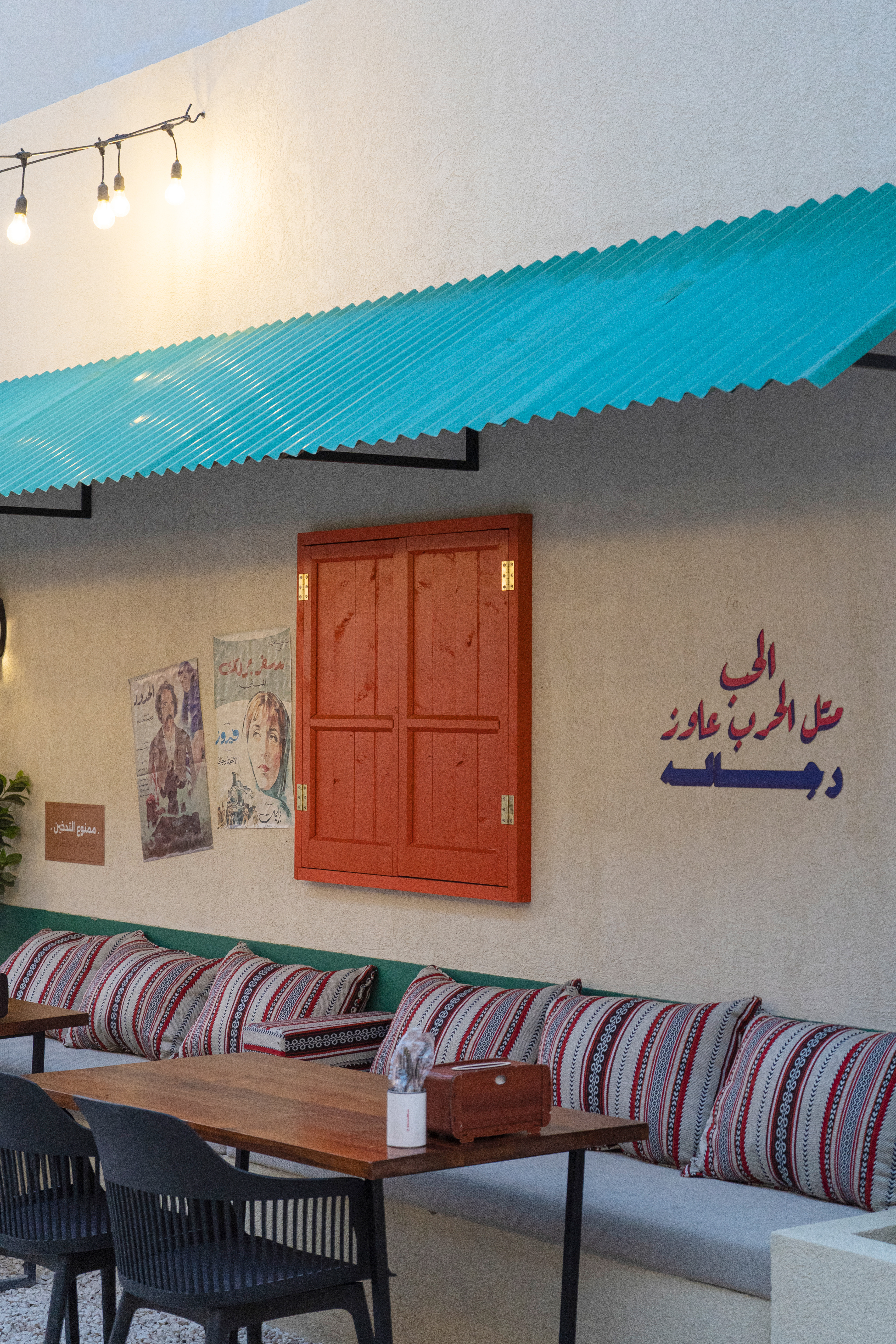 Abowadih is a Middle Eastern restaurant that serves street food in a modern and unique way. The main objective of the Abowadih pop-up design is to create a unique and immersive experience that blends Middle Eastern street food nostalgia with a modern and stylish setting. The pop-up will transport visitors back to the vibrant streets of the 80s and 90s with traditional Arabic pop elements.